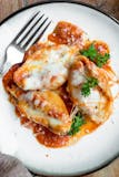 Stuffed with ricotta cheese and baked with tomato sauce and mozzarella cheese.